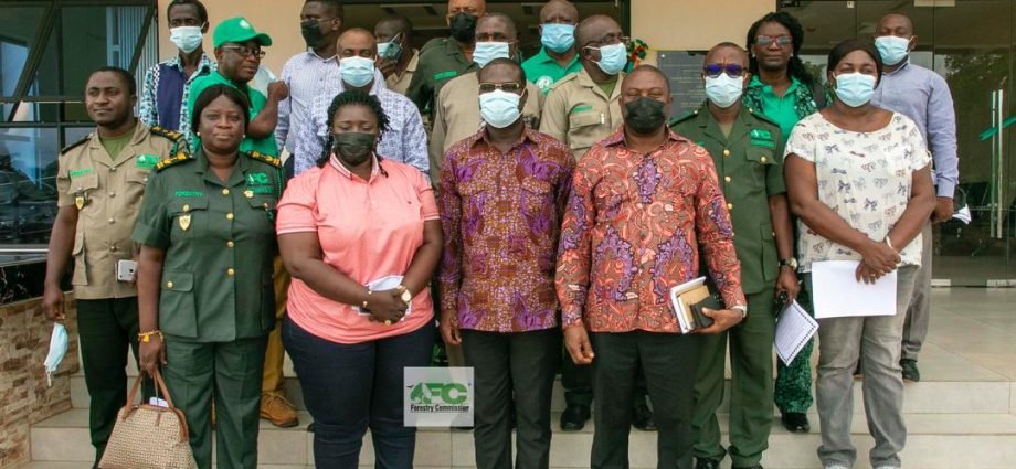 The Chief Executive of Forestry Commission, Mr. John Allotey, undertook a working visit to the Western North Region. He was accompanied by Hon. Martha Kwayie Manu, Deputy Chief Executive of FC and some selected Directors and Deputy Directors of the Commission. The team paid a courtesy visit to Katakyie Kwasi Bumangama II, Paramount Chief of Sefwi Wiawso Traditional Council and the Regional Minister, Mr. Richard Ebbah Obeng. Mr. Louis Owusu Agyapong, MCE, received the CE and his team on behalf of the Regional Minister who was away on official duties. The team also inspected some Green Ghana planting sites and proposed sites for the construction of the new FC regional office. The Chief Executive also met with stakeholders in the timber trade in the Region