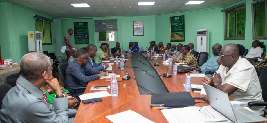 A stakeholder engagement brought together key actors including Executive Management Team of FC, some traditional authorities, the Office of the Administrator of Stool Lands (OASL), and leadership from the timber industry. The meeting was chaired by Ogyeahohoo Yaw Gyebi II, Omanhene of the Sefwi Anhwiaso Traditional Area and President of the National House of Chiefs.
