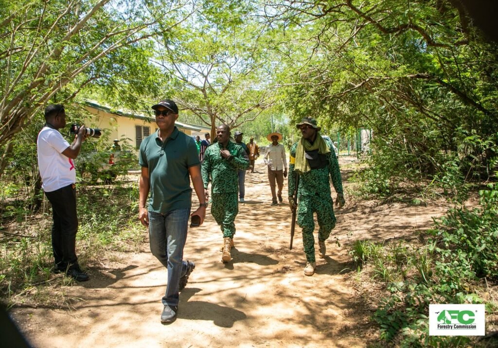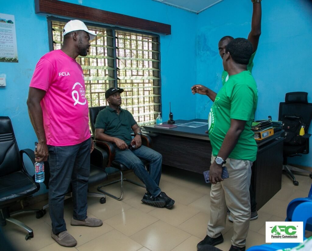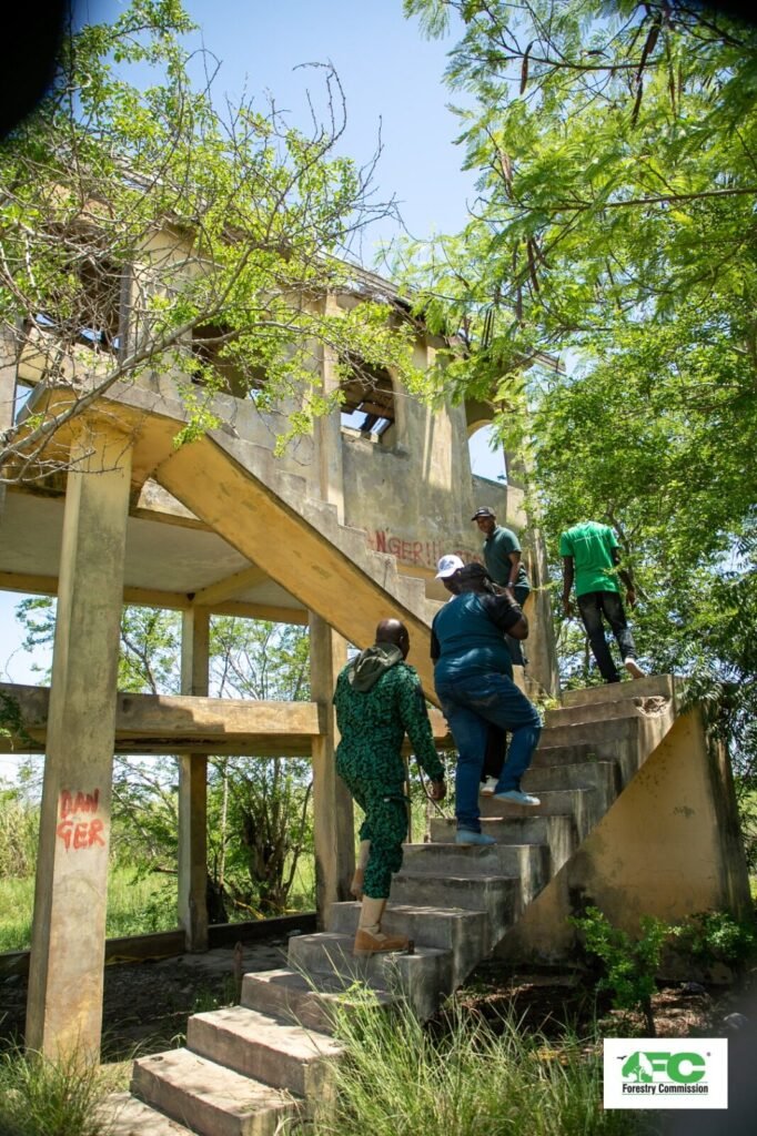 During the tour, the Board visited key areas within the core zone, including a viewing tower overlooking the Sakumo Lagoon, a picnic station, bird-nesting site, and a resting area for fisherfolk. Noting the deteriorated condition of the viewing tower, the Board proposed its reconstruction. Commissioner Richard Duah Nsenkyire, representing the Timber Industry on the FC Board, pledged to donate all the wood required for the construction of the new structure.