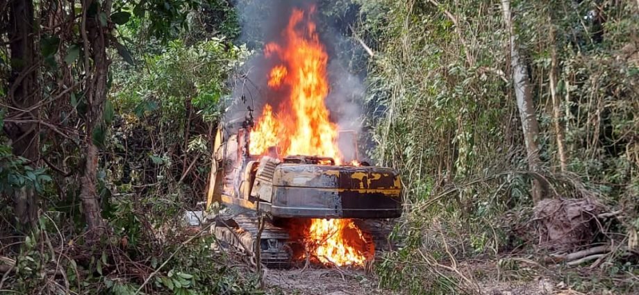 In a series of operations led by the District Manager of Bekwai, Mr. Rexford Twum Damoah, mining equipment including 12 excavators, 12 heavy duty pumping machines and wooden make-shift housing structures of the illegal miners were burnt down.