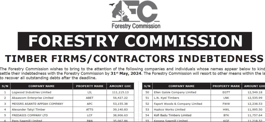 FORESTRY COMMISSION TIMBER FIRMS/CONTRACTORS INDEBTEDNESS