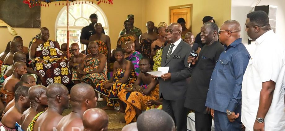 Mr. Allotey congratulated Otumfuo on his 25th anniversary of ascending the throne and wished him well in his future endeavours. He presented the King with drinks and an undisclosed amount of money.